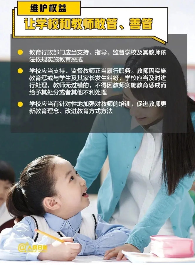 教育行政部門應(yīng)當(dāng)支持、指導(dǎo)、監(jiān)督學(xué)校及其教師依法依規(guī)實(shí)施教育懲戒。