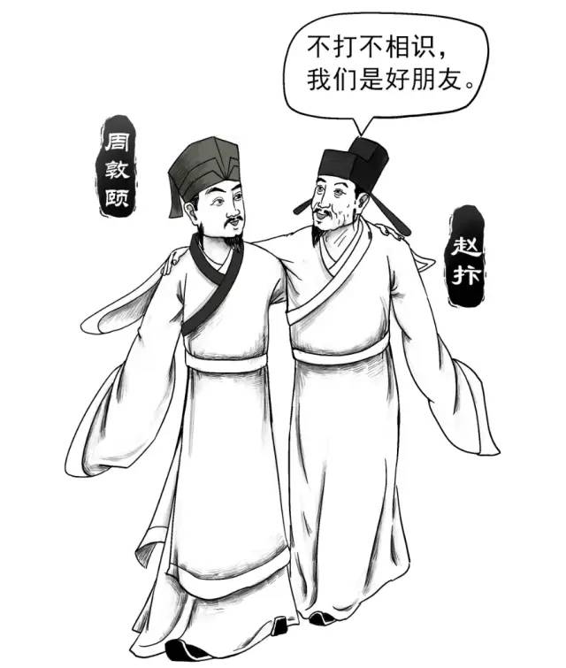 1060年,43歲的周敦頤任虔州(今江西)通判,頂頭上司是與“黑臉”包公齊名的“鐵面御史”趙抃。趙抃曾收到反映周敦頤沽名釣譽不務(wù)實功的舉報,故對初到虔州的周敦頤不冷不熱。但周敦頤不卑不亢,不矜不伐,用心履職,最終贏得趙抃認(rèn)可。他因病退隱后,仍被趙抃多次舉薦。