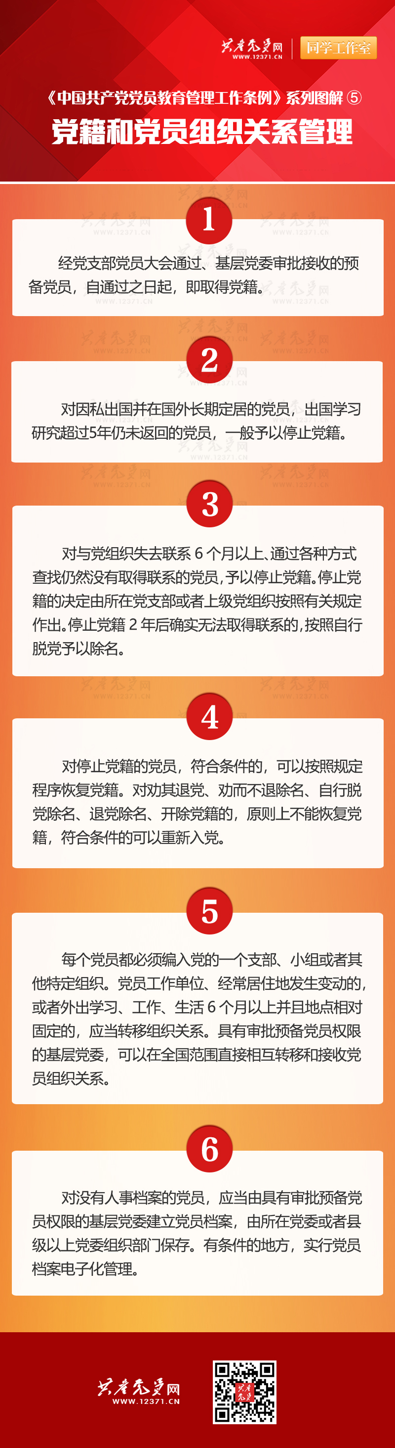 對(duì)出國(guó)(境)學(xué)習(xí)研究黨員,由原就讀高?;蛘吖ぷ鲉挝稽h組織保留其組織關(guān)系,每半年至少與其聯(lián)系1次。出國(guó)(境)學(xué)習(xí)研究黨員返回后按照規(guī)定恢復(fù)組織生活。