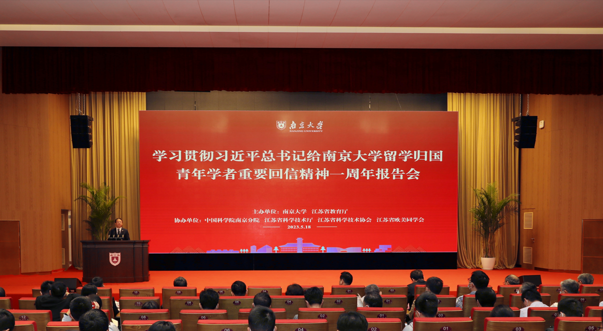 5月18日,學(xué)習(xí)貫徹習(xí)近平總書(shū)記給南京大學(xué)留學(xué)歸國(guó)青年學(xué)者重要回信精神報(bào)告會(huì)在仙林校區(qū)舉行。全省教科研機(jī)構(gòu)留學(xué)歸國(guó)學(xué)者、科研人員代表等300余人齊聚一堂,共同重溫習(xí)近平總書(shū)記給南京大學(xué)留學(xué)歸國(guó)青年學(xué)者重要回信精神,努力在江蘇大地上“報(bào)效國(guó)家、服務(wù)人民”,為全面建設(shè)社會(huì)主義現(xiàn)代化國(guó)家、實(shí)現(xiàn)中華民族偉大復(fù)興中國(guó)夢(mèng)再創(chuàng)佳績(jī)、爭(zhēng)做表率。