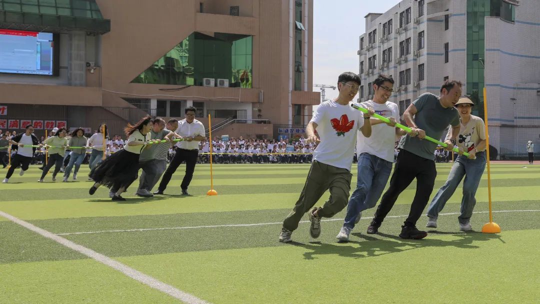 團(tuán)體游戲“一傳到底”和“旋風(fēng)跑”,充滿了趣味性和挑戰(zhàn)性,同學(xué)們?cè)趨⑴c游戲的過程中,既提高了身體素質(zhì),又增強(qiáng)了抗壓能力和團(tuán)隊(duì)凝聚力,大家的情緒獲得了充分釋放與滿足。特別是與同學(xué)們一起互動(dòng)的班主任老師,從他們臉上歡樂的笑容可以感受到他們像風(fēng)一樣自由。