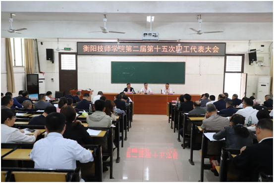 5月13日,衡陽技師學(xué)院第二屆第十五次職工代表大會在學(xué)院第一教學(xué)樓一樓東頭多媒體教室召開。黨委書記肖春林作總結(jié)講話,院長廖與飛作學(xué)院工作報(bào)告,工會主席陳干甲主持,全體黨委班子成員和職工代表等83人參加會議。