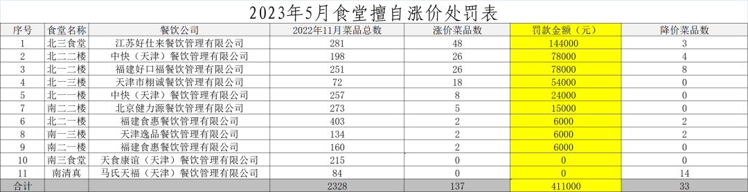 近期,接到多起學(xué)生投訴食堂菜價高的反映,學(xué)校高度重視。經(jīng)查發(fā)現(xiàn)個別食堂確實存在對部分菜品未經(jīng)報審擅自漲價的行為。 經(jīng)研究決定,對擅自漲價食堂和業(yè)務(wù)管理人員嚴(yán)肅處理,具體措施如下: 1. 對擅自漲價菜品的當(dāng)事食堂按照每漲價一個菜品罰款3000元的額度進(jìn)行罰款處理,要求立刻下調(diào)價格并在食堂價目表顯示。對降價菜品較多的南校區(qū)清真食堂獎勵2000元。所罰款項納入餐飲管理中心獎罰基金,??顚S?,用于改善學(xué)生膳食工作。 2. 對負(fù)有具體監(jiān)管職責(zé)的餐飲管理中心食堂管理專員4人,每人罰款2000元。 3. 相關(guān)處罰情況餐飲管理中心將函告各餐飲公司總部,要求各總部提出強化管理整改措施。 中航大產(chǎn)業(yè)公司餐飲管理中心歡迎廣大師生持續(xù)對餐飲管理工作提出寶貴的意見和建議,促進(jìn)餐飲服務(wù)保障工作高質(zhì)量發(fā)展。同時餐飲管理中心會以本次檢查通報為契機,堅持問題導(dǎo)向和目標(biāo)導(dǎo)向,繼續(xù)增強服務(wù)師生意識,積極主動回應(yīng)師生訴求,進(jìn)一步加強服務(wù)監(jiān)管水平。 中航大產(chǎn)業(yè)公司餐飲管理中心 2023-6-5