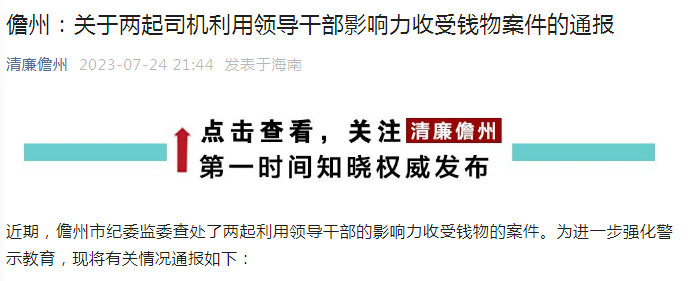 近期,儋州市紀委監(jiān)委查處了兩起利用領導干部的影響力收受錢物的案件。為進一步強化警示教育,現(xiàn)將有關情況通報如下: