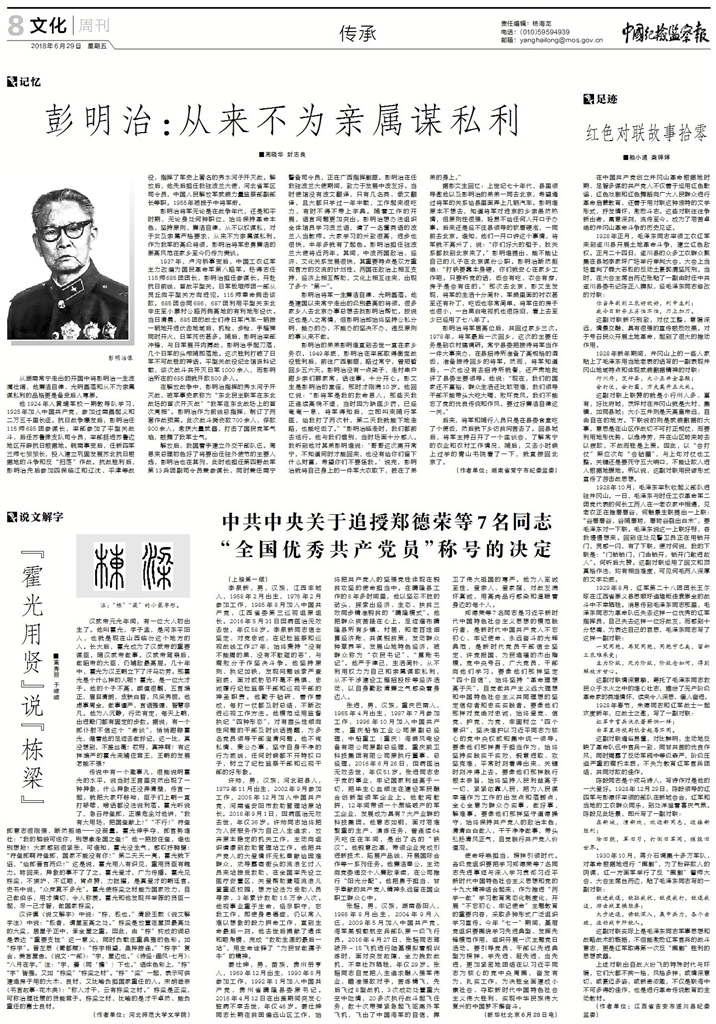 彭明治將軍無論是在戰(zhàn)爭年代,還是和平時期,無論身處何種職位,始終保持革命本色,堅持原則、廉潔自律,從不以權謀私,對子女及親屬嚴格要求,從來不為親屬謀私利。作為我軍的高級將領,彭明治將軍忠勇廉潔的崇高風范在家鄉(xiāng)至今仍傳為美談。