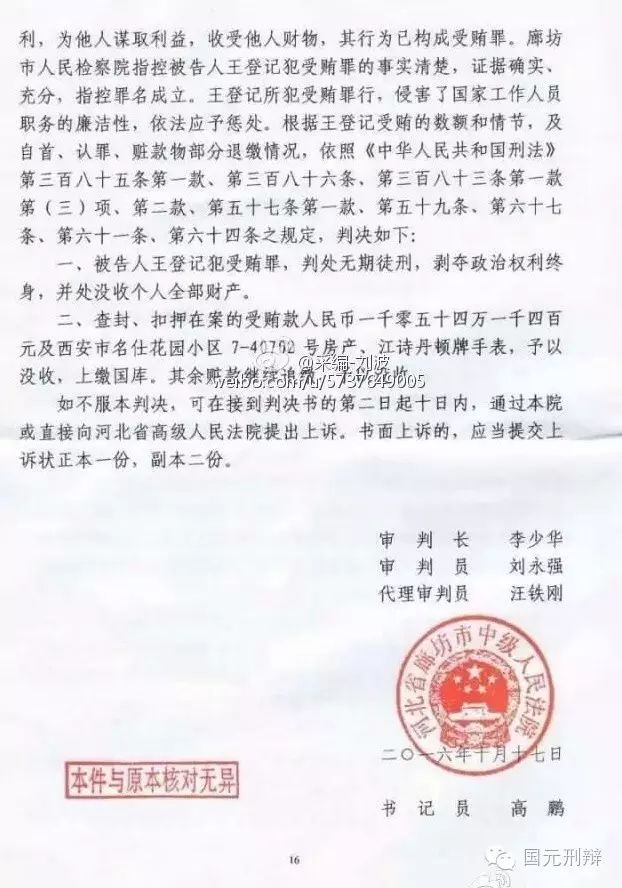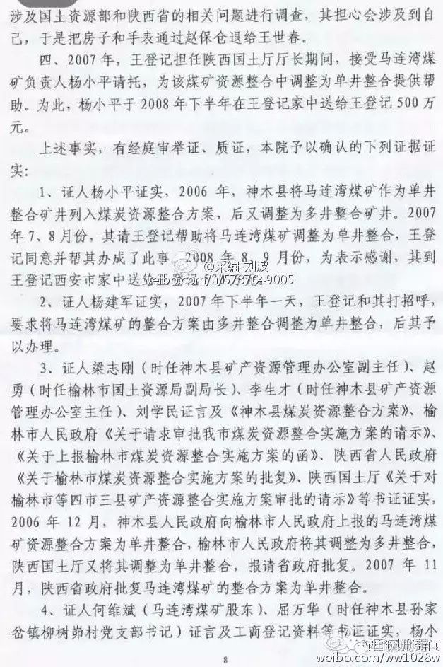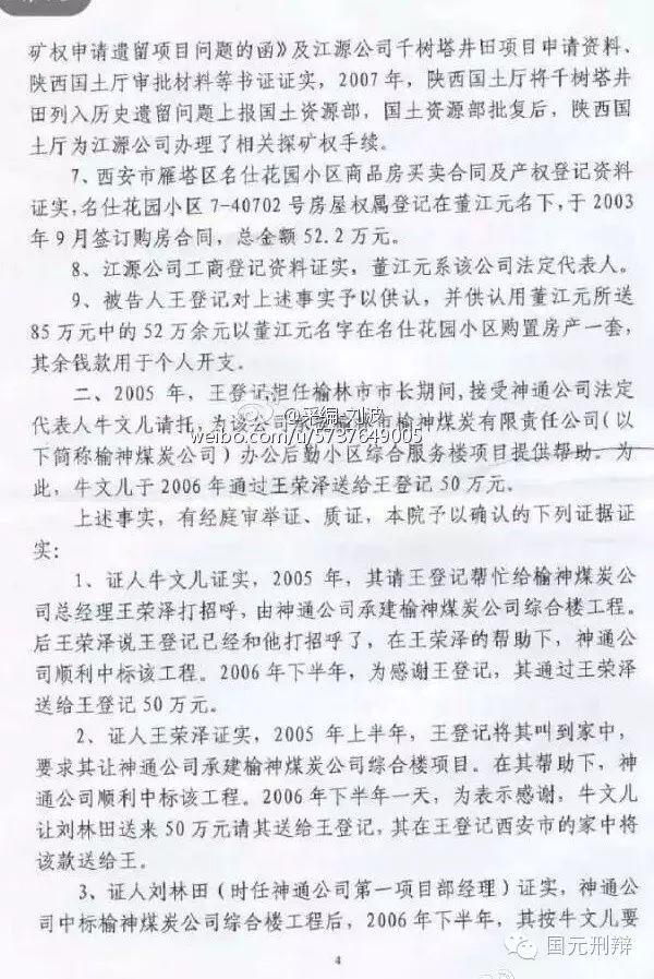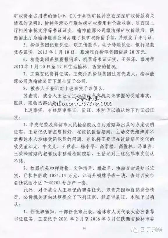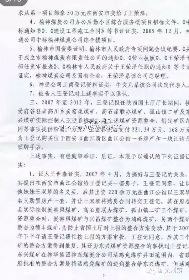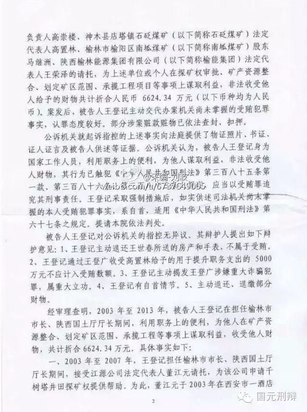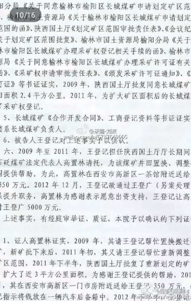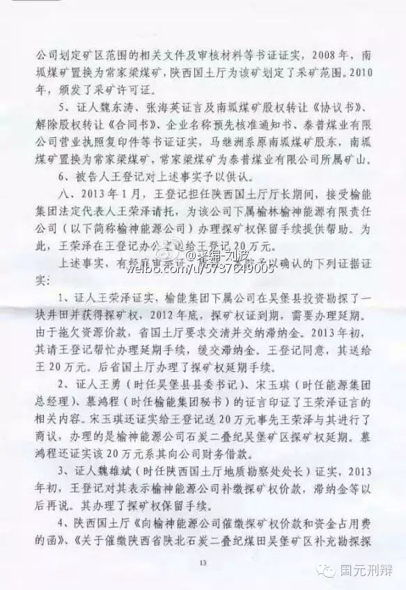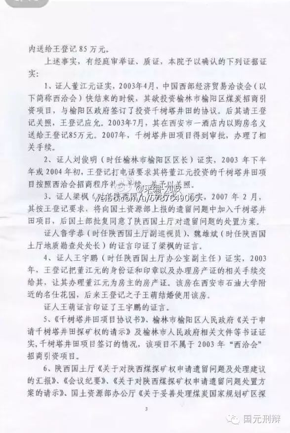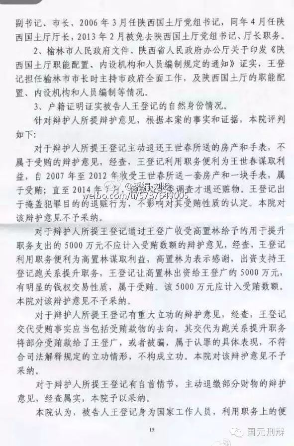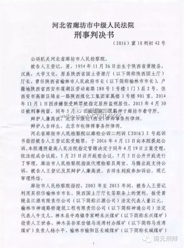 河北廊坊中院一審判決書(shū)(不全)揭秘陜西省原國(guó)土資源廳廳長(zhǎng)王登記受賄6600余萬(wàn)元,其中5000萬(wàn)元用于買(mǎi)官