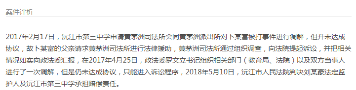 沅江市第三中學(xué)卜某富被楊某豪毆打,法院判決監(jiān)護(hù)人及學(xué)校承擔(dān)賠償責(zé)任