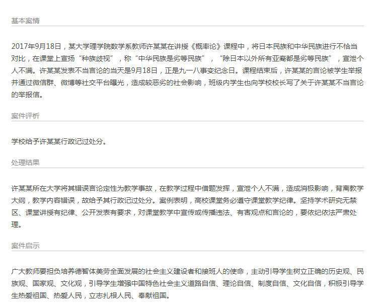 大學(xué)教師發(fā)表不當(dāng)言論被行政記過