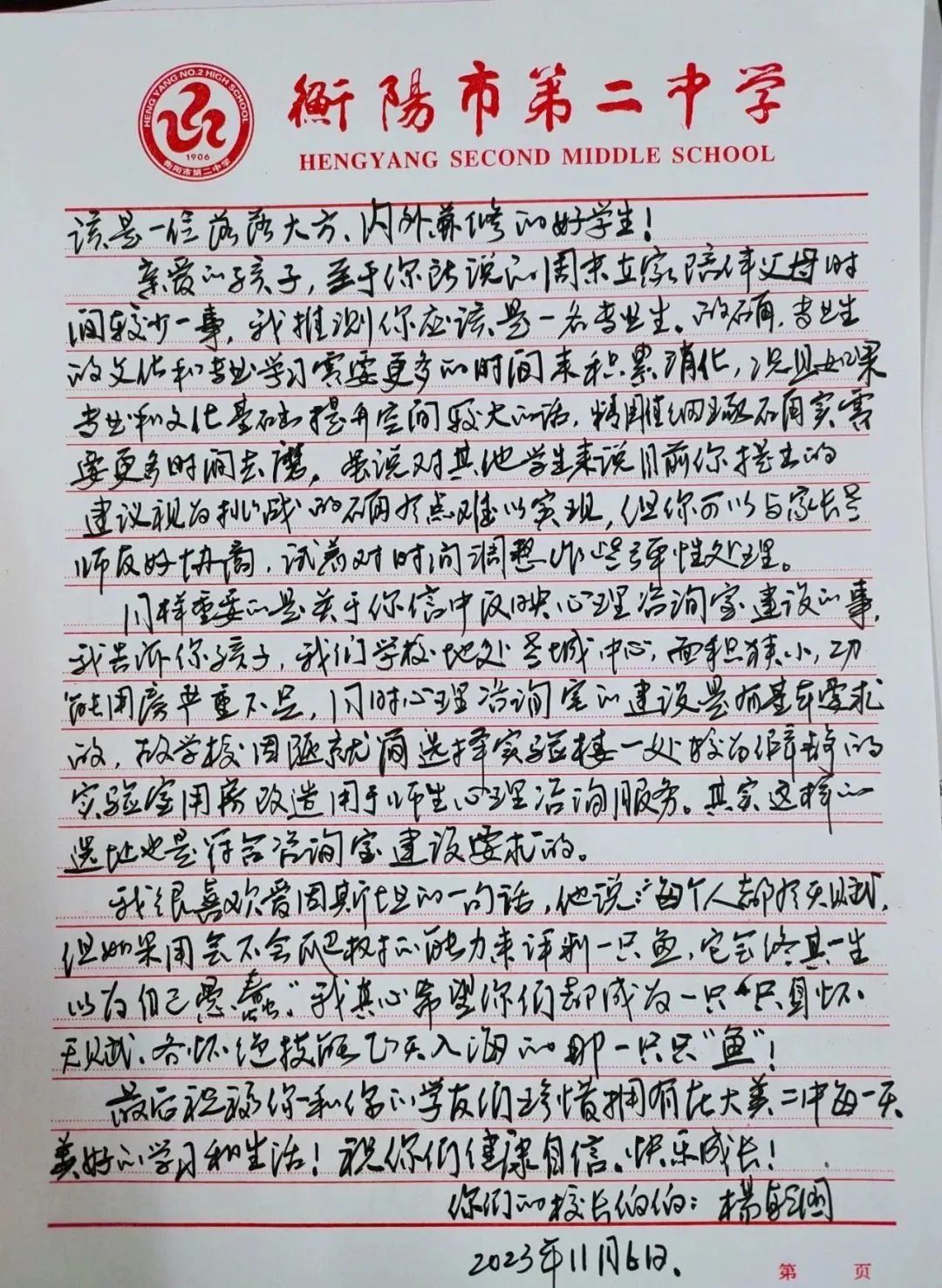 二中書(shū)記、校長(zhǎng)楊乾國(guó)的手寫(xiě)信,太暖心!