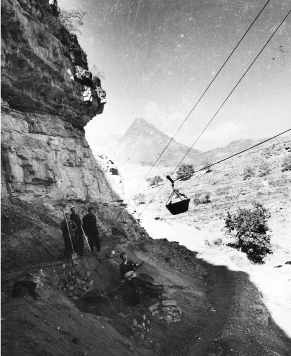 為了確保在汛期前能夠完成修渠任務(wù),他們便在兩山之間,架起了空運(yùn)線。對(duì)于當(dāng)時(shí)紅旗渠工地的技術(shù)水平來說,這的確是一件難事,但他們不怕失敗。經(jīng)過多次試驗(yàn)之后,空運(yùn)線從漳河的岸邊,架到了仙女峰半山腰。為了減輕空運(yùn)線的使用強(qiáng)度,修渠民眾還把水打木輪、驅(qū)動(dòng)水磨的原理,引用到空運(yùn)線上當(dāng)動(dòng)力。