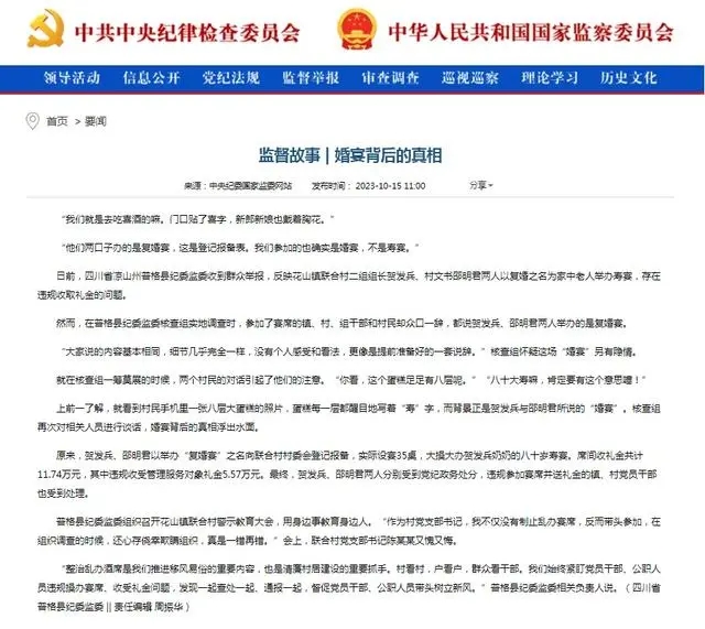 不僅是賀雪梅、李俊案,四川省紀(jì)委監(jiān)委梳理近年來多起案件發(fā)現(xiàn),一些基層干部借婚喪嫁娶事宜收禮斂財,群眾苦不堪言。前不久,涼山州普格縣花山鎮(zhèn)聯(lián)合村二組組長賀發(fā)兵和村文書邵明君因舉辦“復(fù)婚宴”而被當(dāng)?shù)丶o(jì)委處分的案例引起了廣泛關(guān)注。經(jīng)查,賀發(fā)兵和邵明君兩人以舉辦“復(fù)婚宴”之名向村委會登記報備,但實際上是為了給賀發(fā)兵的奶奶舉辦80歲壽宴。他們不僅沒有遵守相關(guān)規(guī)定,還借機(jī)收取了村民的禮金5.57萬元。