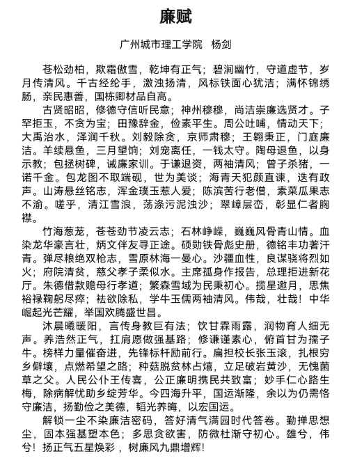 第八屆高校廉潔教育系列活動(dòng)“廉心文語”校園征文優(yōu)秀作品:廉賦