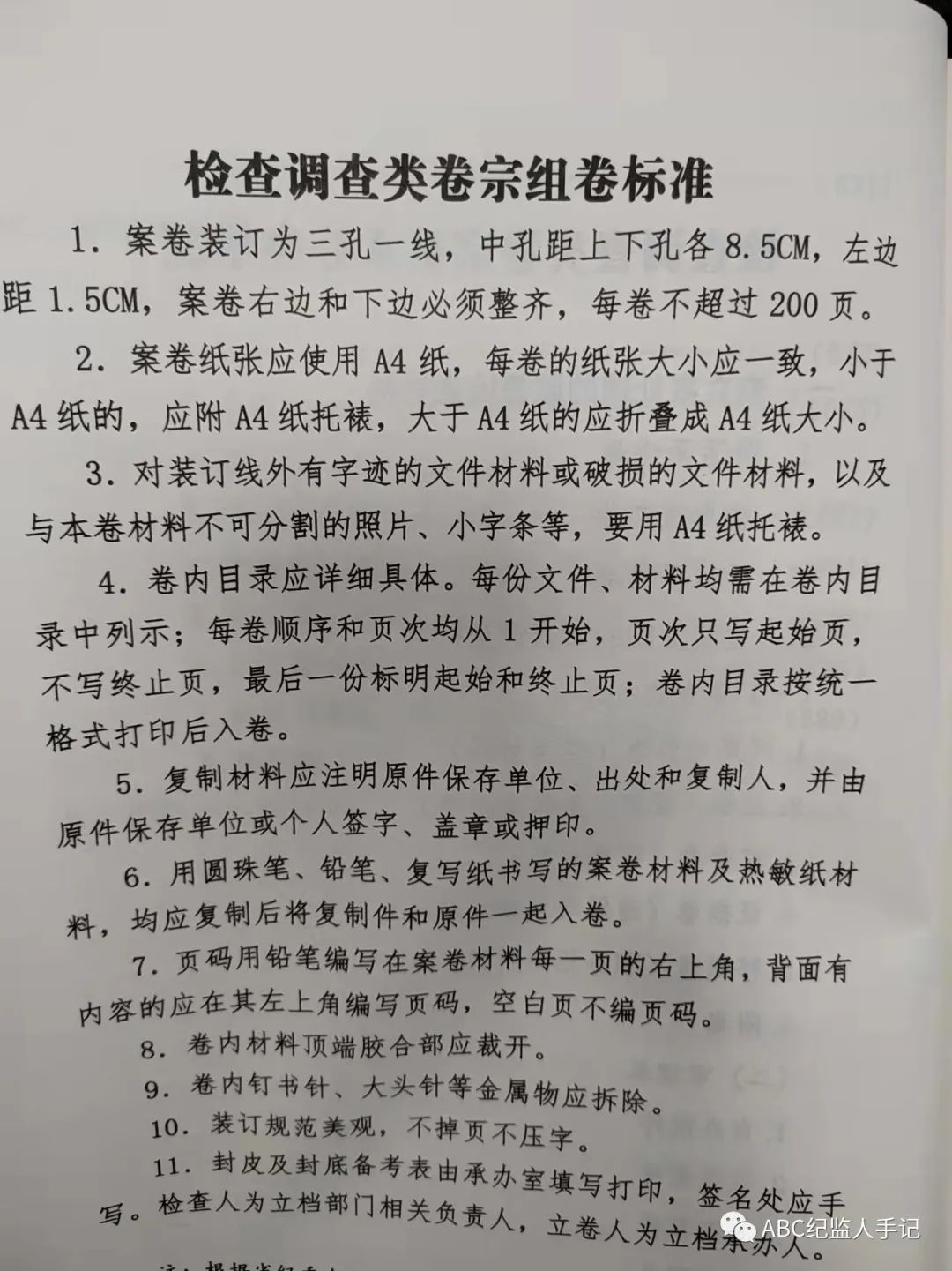 檢查調(diào)查類卷宗裝訂標準