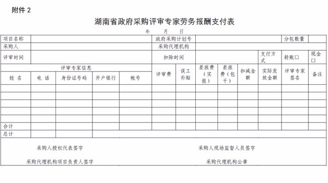2、湖南省政府采購(gòu)項(xiàng)目評(píng)審專家勞務(wù)報(bào)酬支付表