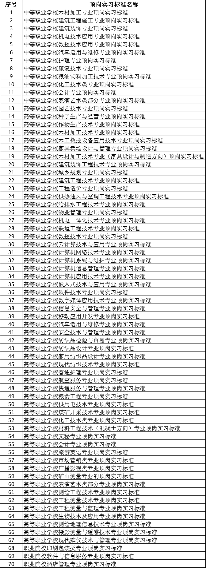 教育部辦公廳關(guān)于公布首批《職業(yè)學(xué)校專業(yè) (類)頂崗實(shí)習(xí)標(biāo)準(zhǔn)》目錄的通知