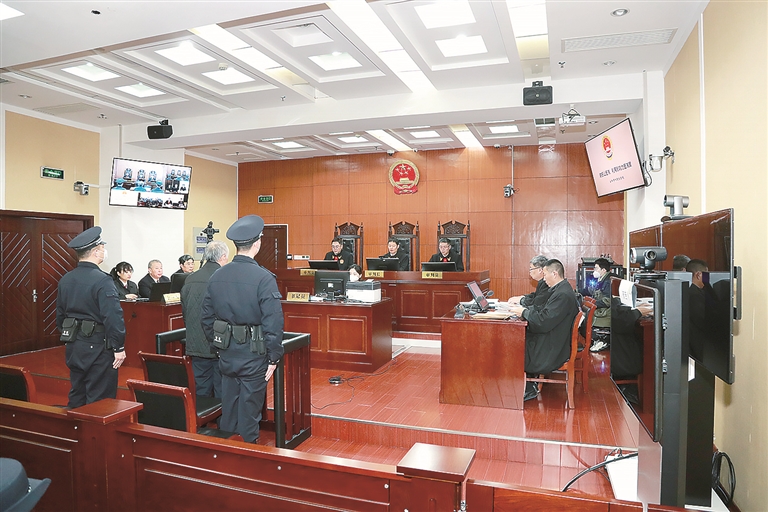 圖為2023年2月1日,謝振山涉嫌受賄罪、利用影響力受賄罪案一審?fù)彫F(xiàn)場(chǎng)。(安陽(yáng)市中級(jí)人民法院供圖)