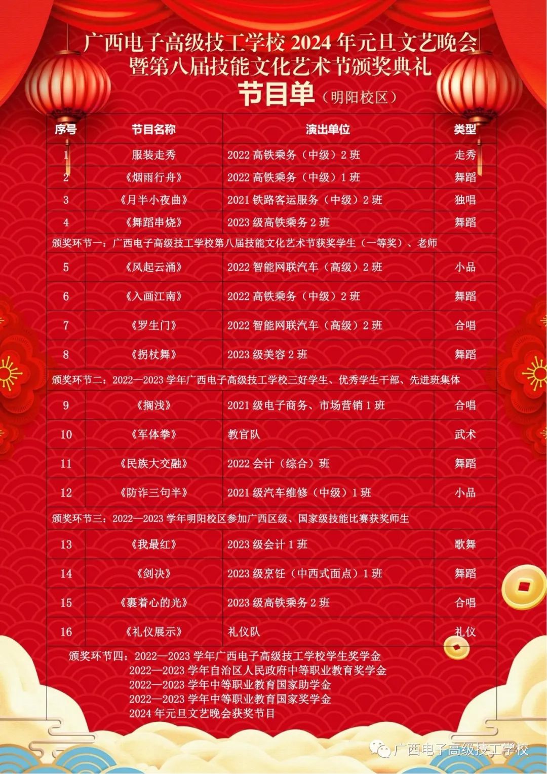 各地技工院校元旦晚會(huì)節(jié)目單
