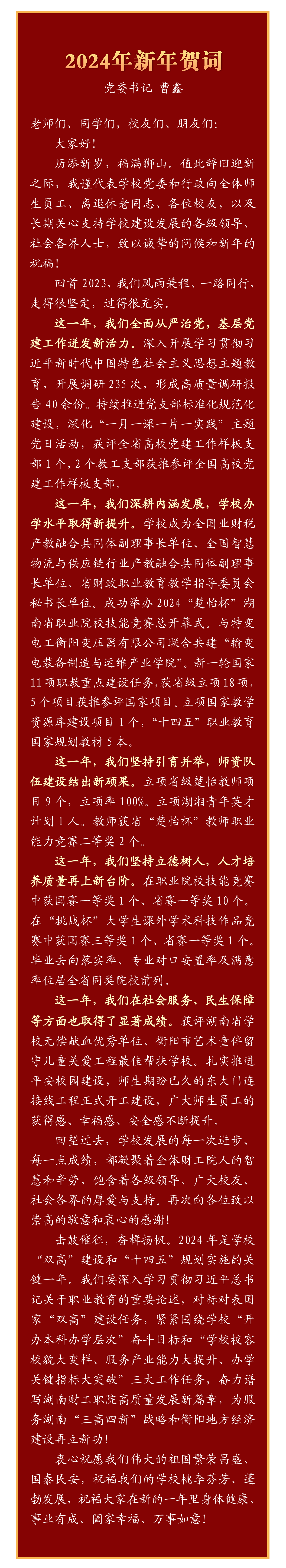 湖南省陶瓷技師學(xué)院二〇二四年新年賀詞