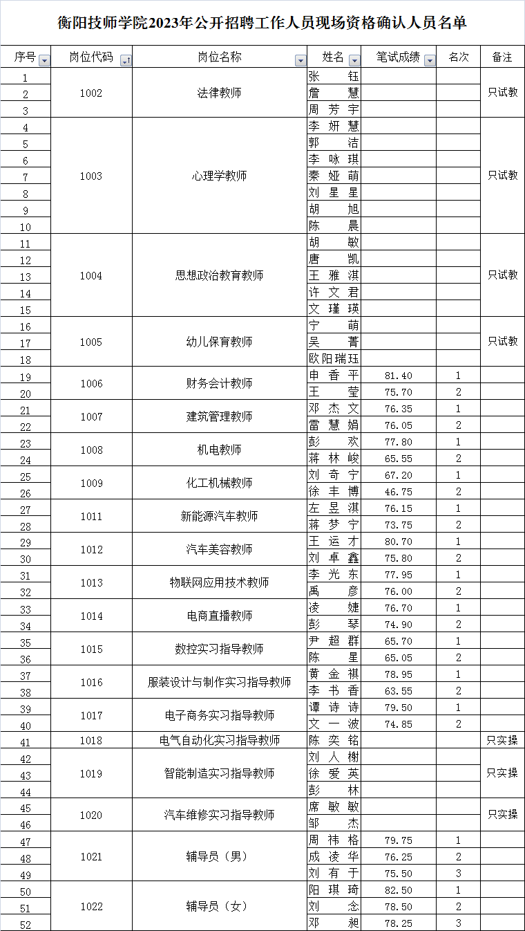 根據(jù)《2023年衡陽技師學院公開招聘工作人員公告》和招聘工作進度,現(xiàn)將現(xiàn)場資格確認及面試有關(guān)事項公告如下: