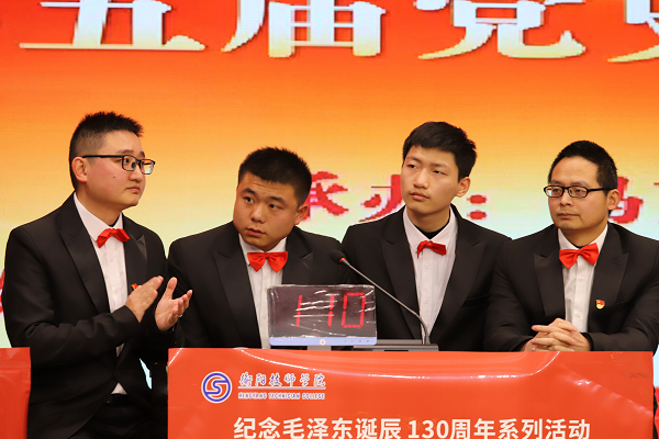 此次競賽分為“學富五車”必答題、“學無止境”搶答題、“博學多才”風險題以及“不服來戰(zhàn)”攻擂賽四個環(huán)節(jié)。參賽選手們用優(yōu)異的表現,帶領場下觀眾接受了一次“沉浸式”的黨史教育?!榜R克思主義中國化”“中共一大”“《實踐論》”,一個個與毛澤東同志相關的歷史知識與思想理論,以黨史知識問答的形式生動展現在師生面前,競賽精彩激烈。
