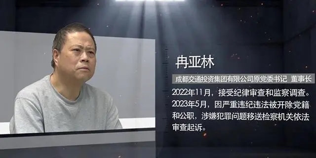 【解說(shuō)詞】冉亞林,成都交通投資集團(tuán)有限公司原黨委書(shū)記、董事長(zhǎng),2022年11月接受紀(jì)律審查和監(jiān)察調(diào)查,2023年5月因嚴(yán)重違紀(jì)違法被開(kāi)除黨籍和公職,涉嫌犯罪問(wèn)題移送檢察機(jī)關(guān)依法審查起訴。