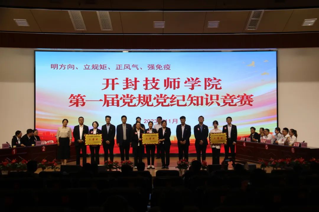 為深入開展學習貫徹習近平新時代中國特色社會主義思想主題教育,貫徹落實黨的二十大精神,在全院黨員中營造比學趕超的濃厚氛圍,11月2日,開封技師學院第一屆“明方向、立規(guī)矩、正風氣、強免疫”黨規(guī)黨紀知識競賽決賽在產(chǎn)教融合樓五樓報告廳拉開序幕。學院院長涂天鴻、副院長晏登民、工會主席王志廣、副院長王瑜、紀委書記梁偉出席決賽,市紀委監(jiān)委派駐市人社局紀檢監(jiān)察組四級調(diào)研員梁江紅應(yīng)邀來到?jīng)Q賽現(xiàn)場。