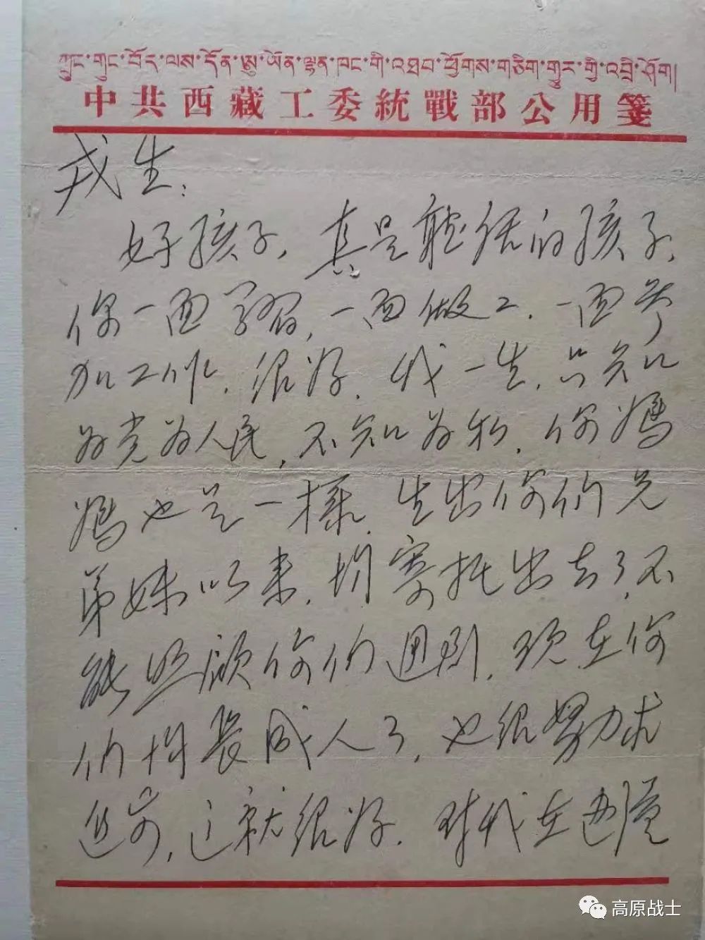 戎生,好孩子,真是聽話的孩子,你一面學(xué)習(xí),一面做工,一面參加工作,很好。我一生只知為黨為人民,不知為私,你媽媽也一樣,生出你們兄弟妹以來,均寄托出去了,不能照顧你們周到,現(xiàn)在你們均長大成人了,也很努力求進(jìn)步,這就很好,對(duì)我在邊疆工作也是很大的鼓勵(lì)之一,主要是黨是人民給予我的鼓勵(lì)。