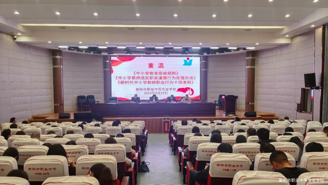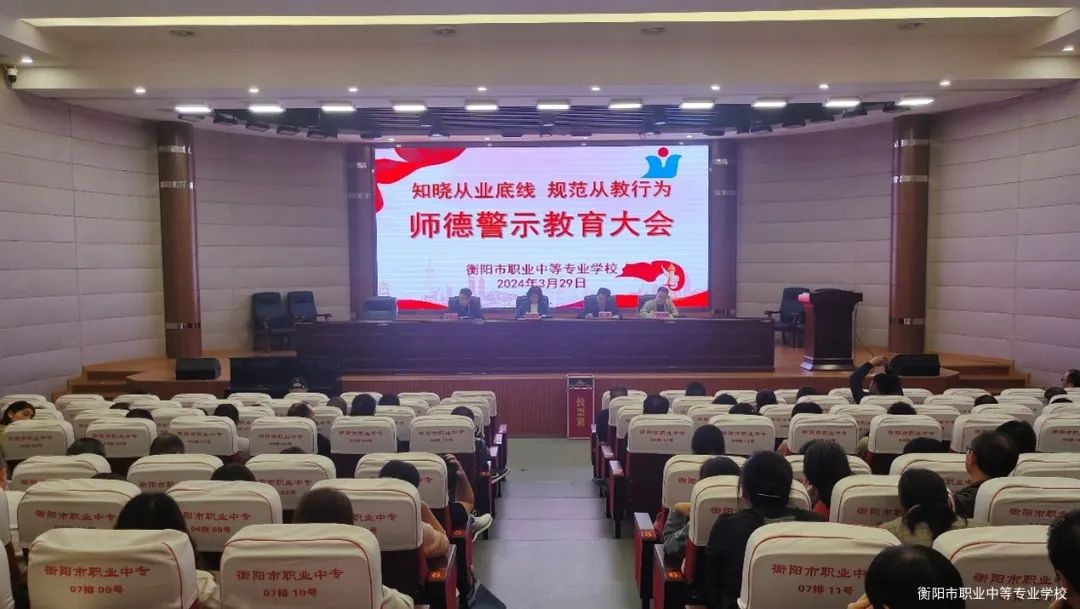 為貫徹落實(shí)衡陽(yáng)市教育局《關(guān)于在全市教育系統(tǒng)組織召開(kāi)全員師德警示教育的通知》精神,進(jìn)一步加強(qiáng)學(xué)校師德師風(fēng)建設(shè),提升教師的思想政治素質(zhì)和職業(yè)道德水平,3月29日下午,衡陽(yáng)市職業(yè)中等專(zhuān)業(yè)學(xué)校在多功能報(bào)告廳召開(kāi)了“知曉從業(yè)底線(xiàn) 規(guī)范從教行為”師德警示教育大會(huì),會(huì)議由校長(zhǎng)鄒鵬主持,全體教職員工參加。