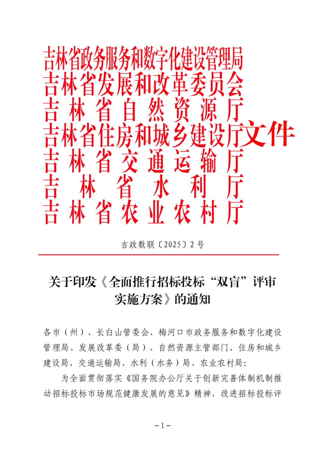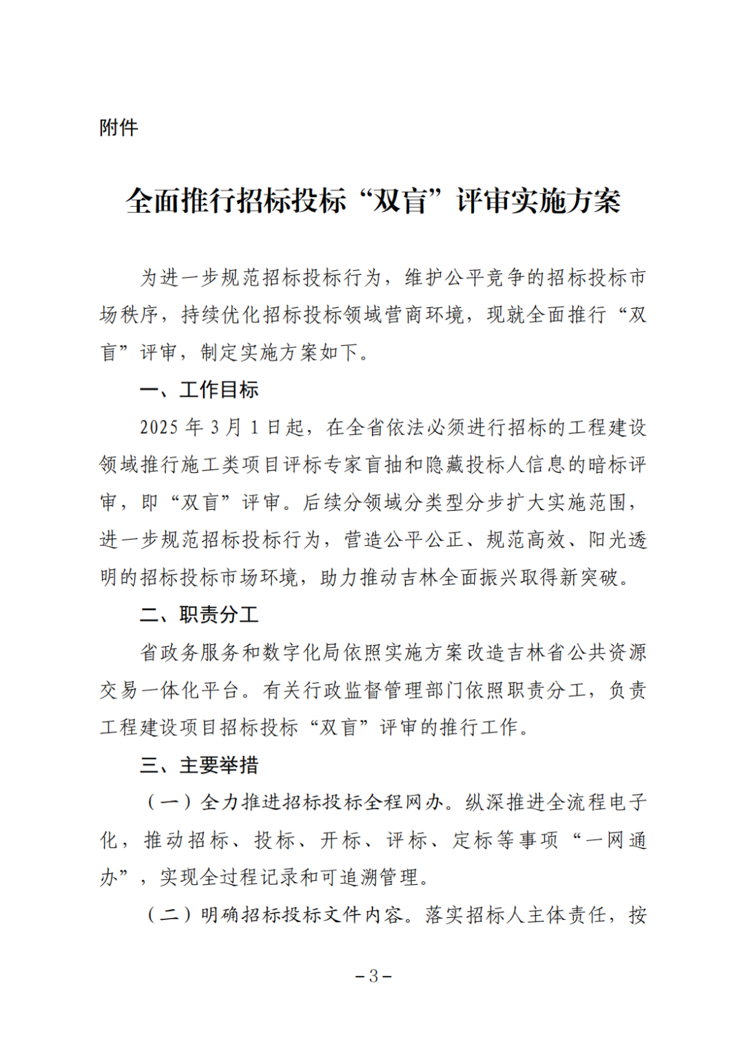 吉林省全面推行招標(biāo)投標(biāo)“雙盲”評審實施方案