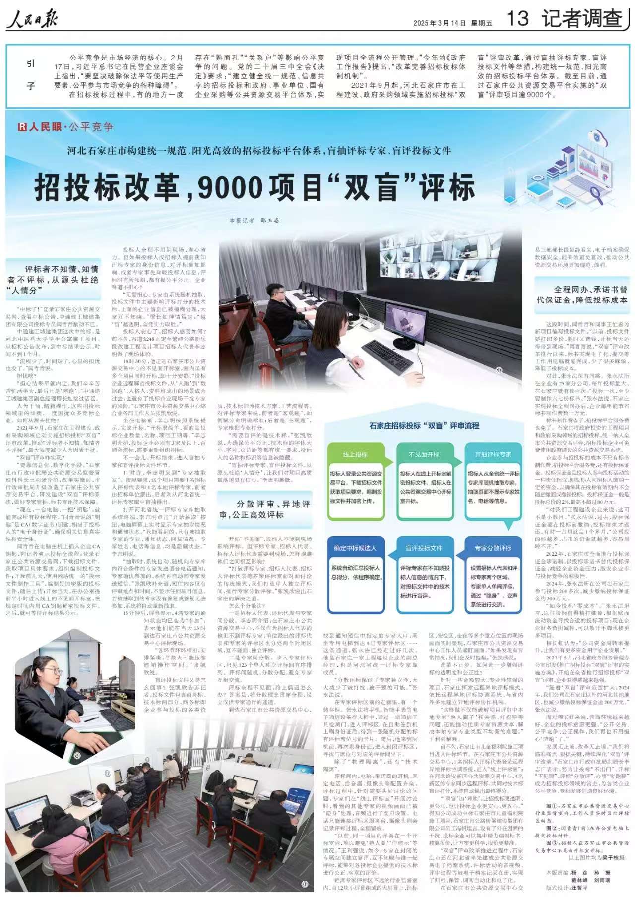 河北石家莊市構(gòu)建統(tǒng)一規(guī)范、陽(yáng)光高效的招標(biāo)投標(biāo)平臺(tái)體系,盲抽評(píng)標(biāo)專家,盲評(píng)投標(biāo)文件