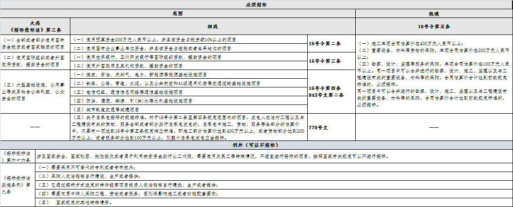 ??(三)關(guān)于招標(biāo)范圍列舉事項。依法必須招標(biāo)的工程建設(shè)項目范圍和規(guī)模標(biāo)準(zhǔn),應(yīng)當(dāng)嚴(yán)格執(zhí)行《招標(biāo)投標(biāo)法》第三條和16號令、843號文規(guī)定;法律、行政法規(guī)或者國務(wù)院對必須進(jìn)行招標(biāo)的其他項目范圍有規(guī)定的,依照其規(guī)定。沒有法律、行政法規(guī)或者國務(wù)院規(guī)定依據(jù)的,對16號令第五條第一款第(三)項中沒有明確列舉規(guī)定的服務(wù)事項、843號文第二條中沒有明確列舉規(guī)定的項目,不得強(qiáng)制要求招標(biāo)。