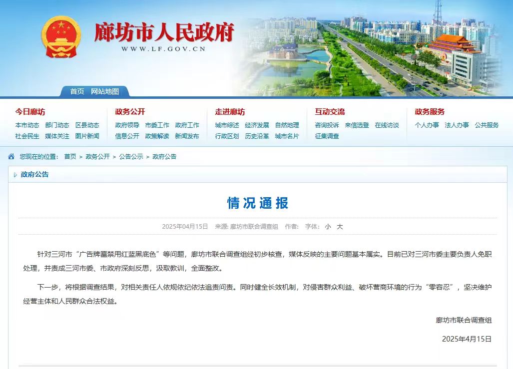 2024年7月以來,三河市個別領(lǐng)導(dǎo)干部政績觀錯位、官僚主義嚴(yán)重,未經(jīng)科學(xué)論證和充分征求意見,推動出臺《城市規(guī)劃建設(shè)管理導(dǎo)則》,脫離實際提出廣告牌匾“除國際國內(nèi)連鎖品牌,不允許用紅藍(lán)底色或字樣”等禁止性規(guī)定。為推動牌匾整治工作快速見效,該市組織開展兩次百日攻堅行動,違反《整治形式主義為基層減負(fù)若干規(guī)定》,頻繁進(jìn)行工作調(diào)度、督查督辦和排名通報,加重基層負(fù)擔(dān)。該市城市管理綜合行政執(zhí)法部門在執(zhí)行中簡單機(jī)械,搞形式主義“一刀切”,對包括國內(nèi)連鎖品牌在內(nèi)的1800余塊商戶門頭牌匾顏色進(jìn)行變更,損害了群眾利益,造成不良影響。時任三河市委主要負(fù)責(zé)人已受到免職處理。