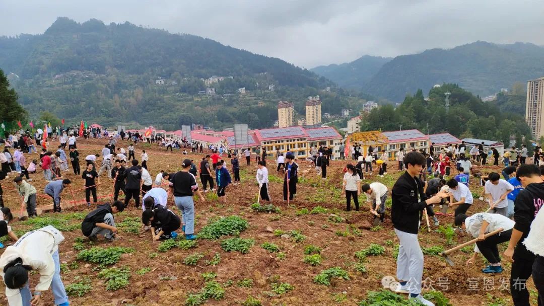 春播,夏耘,秋獲,冬藏…… 每一個季節(jié)的勞作都是最偉大的勞動!為了深入踐行勞動教育,深化勞動精神。宣恩一中2023年10月創(chuàng)建勞動教育基地,占地面積約45畝,該基地劃分43塊班級責(zé)任田和一個勞動工具清洗區(qū),勞動教育對象以高一、高二年級學(xué)生為主,教育內(nèi)容包括土地開墾、作物播種、間苗補苗、施肥除草、收割出產(chǎn)全過程。