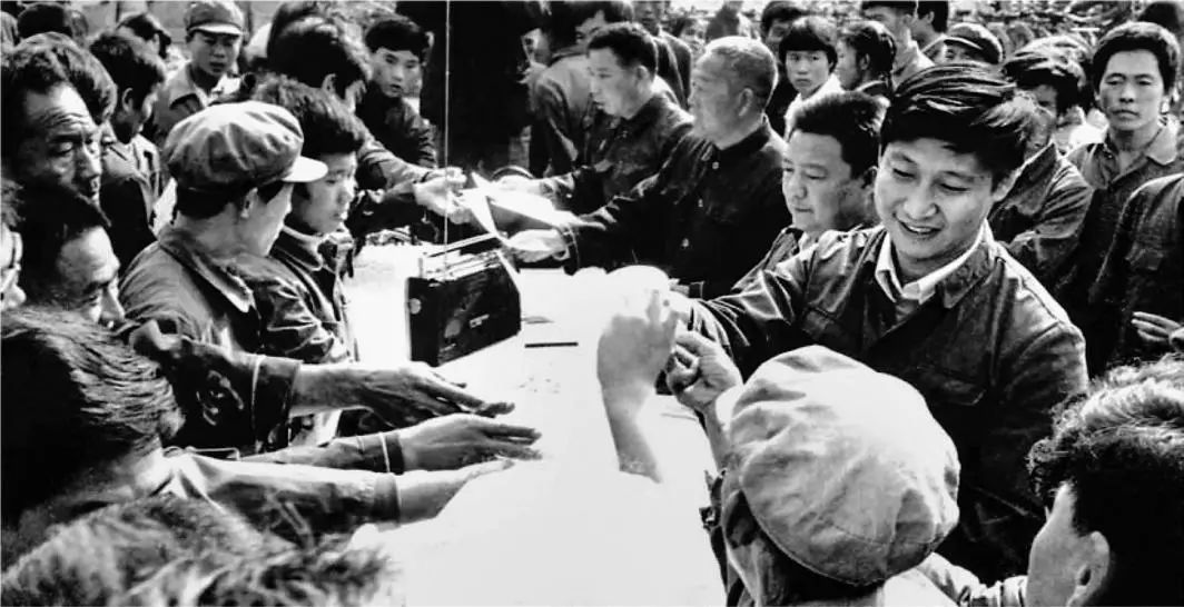 1984年10月8日,正趕上河北正定縣城大集,時(shí)任縣委書記習(xí)近平帶著工作人員來到大街上,擺好桌子和長凳,向老百姓發(fā)放問卷。