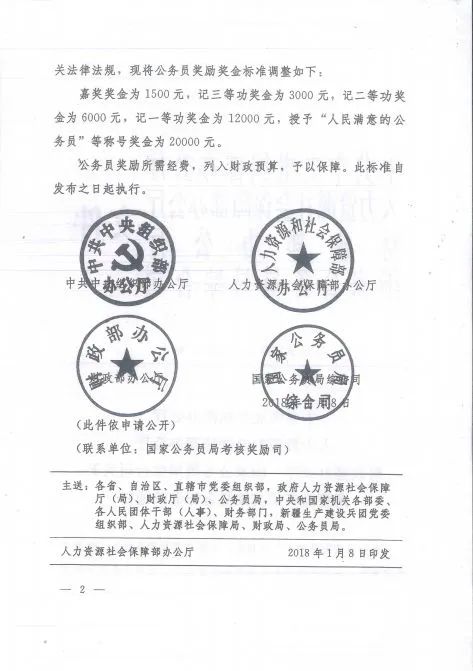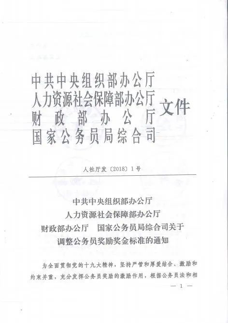 為全面貫徹黨的十九大精神,堅持嚴管和厚愛結合、激勵和約束并重,充分發(fā)揮公務員獎勵的激勵作用,根據(jù)公務員法和相關法律法規(guī),現(xiàn)將公務員獎勵獎金標準調整如下: