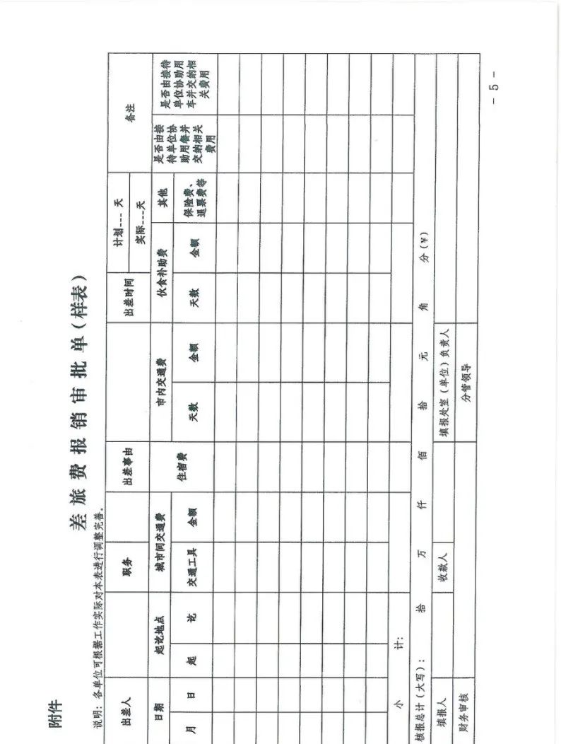 五、接待單位協(xié)助安排用餐、提供交通工具的,出差人員索取的相應的行政事業(yè)單位資金往來結算票據或稅務發(fā)票等憑證不作為報銷依據,但作為報銷附件由單位與差旅費報銷審批單(樣表附后)一并留存?zhèn)洳?/span>;未由接待單位協(xié)助安排用餐或提供交通工具的,出差人員無需提供。