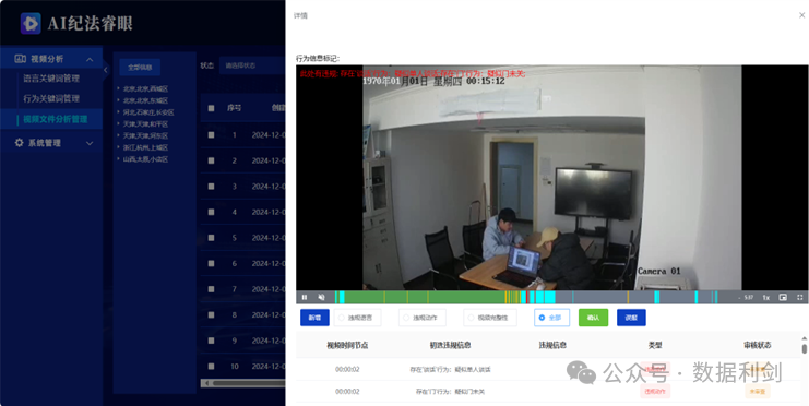 AI紀(jì)法睿眼 系統(tǒng)特色 傳統(tǒng)留置中心往往依賴于人力進(jìn)行一對一貼身看護(hù)和監(jiān)督,這種方式不僅效率低下,而且存在諸多安全隱患。運(yùn)用人工智能、高新設(shè)備等技術(shù)手段實(shí)現(xiàn)智慧看護(hù),可以大大提高留置中心的安全性和效率,減少人為因素的干擾,確保留置工作的順利進(jìn)行。不僅能讓監(jiān)管者能夠通過中央監(jiān)控大屏等方式了解留置室的實(shí)時(shí)情況,確保留置工作的公正性和透明度,同時(shí)通過人工智能和大數(shù)據(jù)分析,對留置人員的行為、情緒等進(jìn)行實(shí)時(shí)監(jiān)測和分析,及時(shí)發(fā)現(xiàn)異常情況并采取相應(yīng)的措施,還能更好地保障留置人員的權(quán)益。 1、確保信息安全 結(jié)合Ai語音等本地化部署的輕量級大模型,建設(shè)AI紀(jì)法睿眼系統(tǒng),用于輔助工作人員對談話和留置看護(hù)的監(jiān)督視頻內(nèi)容進(jìn)行全面解析、研判,確保工作的依法合規(guī)。 2、創(chuàng)新工作模式 通過AI技術(shù)輔助紀(jì)檢干部進(jìn)行審查,系統(tǒng)智能判讀不合規(guī)用語、行為分析報(bào)告,讓紀(jì)檢干部從一般事務(wù)的檢查向異常事件的審核轉(zhuǎn)變,更好地履職合規(guī)性監(jiān)督職能。 3、高效解析內(nèi)容 我們通過現(xiàn)場測試發(fā)現(xiàn),在內(nèi)容全程判讀場景下,語音內(nèi)容識別判讀效率可以從人工判讀的30分鐘縮短到小于3分鐘。在系統(tǒng)輔助下,判讀效率得到了極大的提升,作用十分顯著。 功能界面 系統(tǒng)功能 功能1:違紀(jì)關(guān)鍵詞庫管理 關(guān)鍵詞庫 系統(tǒng)具有開放式的關(guān)鍵詞庫,通過違紀(jì)行為 及關(guān)鍵詞的持續(xù)完善,最終形成涵蓋了各類違紀(jì)行為的標(biāo)準(zhǔn)庫,可供全系統(tǒng)開放使用。 智能分析 除了關(guān)鍵詞檢測,系統(tǒng)還能對語義進(jìn)行深入分析,識別潛在的違規(guī)隱患。比如,即使沒有使用違紀(jì)關(guān)鍵詞,但語句中包含威脅、謾罵等不當(dāng)內(nèi)容,系統(tǒng)也能準(zhǔn)確捕捉并報(bào)警。 自動歸類 檢測到的違紀(jì)關(guān)鍵詞和潛在隱患會被自動歸類,便于管理人員快速定位問題所在,采取有針對性的措施。同時(shí),系統(tǒng)還會生成詳細(xì)的分析報(bào)告,助力內(nèi)部工作持續(xù)完善。 功能2:語音內(nèi)容分析 敏感詞檢測 系統(tǒng)可以識別視頻中語音轉(zhuǎn)換文字后的違紀(jì)敏感詞,并對語音中的行為進(jìn)行輔助定性:目前分為呵斥、辱罵、威脅等三大類行為。 智能分析 系統(tǒng)會對檢測到的關(guān)鍵詞進(jìn)行數(shù)據(jù)統(tǒng)計(jì)和分析。 違紀(jì)報(bào)告 系統(tǒng)可以根據(jù)需要生成違紀(jì)行為的分析報(bào)告。 功能3:動作分析 使用手機(jī) 系統(tǒng)可以準(zhǔn)確識別視頻中人員使用手機(jī)的行為。 房門未關(guān) 系統(tǒng)可以檢測談話時(shí)房門是否關(guān)閉。 單人談話、談話超時(shí) 系統(tǒng)可以檢測單人談話、多人談話、談話超時(shí)等異常行為。 攜帶異物 系統(tǒng)可以檢測食物、刀具、電腦、紙箱、眼鏡等異物。 對象獨(dú)處 檢測看護(hù)對象是否獨(dú)處。 后續(xù)新增行為 拍桌子、坐在桌子上、手指對象、禁食、未體檢、未活動、看護(hù)打瞌睡、單人看護(hù)、看護(hù)未一站一坐、身體接觸等行為在訓(xùn)練中。 關(guān)鍵技術(shù) AI語音大模型 01 多格式文件語音轉(zhuǎn)換 該功能支持多種格式的音視頻文件,將語音信息轉(zhuǎn)換成文字。轉(zhuǎn)寫結(jié)果可顯示在系統(tǒng)界面上,極大地提高了工作效率。 02 開放的語種庫管理 我們的系統(tǒng)目前支持中文普通話。后續(xù)經(jīng)過訓(xùn)練,可以建立各地方言語種,方便工作人員進(jìn)行更精準(zhǔn)地研判和分析。 03 本地存儲 轉(zhuǎn)寫后的文字文件會自動保存在本地?cái)?shù)據(jù)庫中,供工作人員隨時(shí)查閱。同時(shí),系統(tǒng)還能根據(jù)內(nèi)容進(jìn)行歸類整理,方便快速檢索所需信息。 關(guān)鍵詞分析 01 自動檢測違紀(jì)語言 系統(tǒng)會實(shí)時(shí)掃描視頻中的對話和文字,自動檢測是否含有違紀(jì)、違法或其他高風(fēng)險(xiǎn)關(guān)鍵詞。一旦發(fā)現(xiàn),會立即觸發(fā)報(bào)警,幫助工作人員及時(shí)采取措施。 02 分析關(guān)鍵詞出現(xiàn)頻率 除了檢測關(guān)鍵詞,系統(tǒng)還會統(tǒng)計(jì)各類關(guān)鍵詞在對話中的出現(xiàn)頻率,為安全分析提供數(shù)據(jù)支持。工作人員可據(jù)此發(fā)現(xiàn)異常情況,并采取針對性的預(yù)防措施。 03 情感分析功能 系統(tǒng)還具有情感分析功能,能夠識別對話中的情緒傾向,如激動、憤怒等。這有助于工作人員提前發(fā)現(xiàn)可能引發(fā)事故或糾紛的隱患,并采取相應(yīng)的預(yù)防措施。 AI行為動作識別模型 01 異常行為檢測 可快速識別吸煙、玩手機(jī)等違規(guī)行為,并在第一時(shí)間發(fā)出預(yù)警。 02 動作庫 過實(shí)景訓(xùn)練,持續(xù)完善行為動作庫,提升視頻內(nèi)容判讀能力。 03 數(shù)據(jù)可視化 通過直觀的儀表盤,管理人員可清晰了解系 統(tǒng)運(yùn)行狀況。 系統(tǒng)特點(diǎn) 01 直觀的系統(tǒng)界面 智能讀取 系統(tǒng)通過大文件分割技術(shù)和多線程技術(shù)。