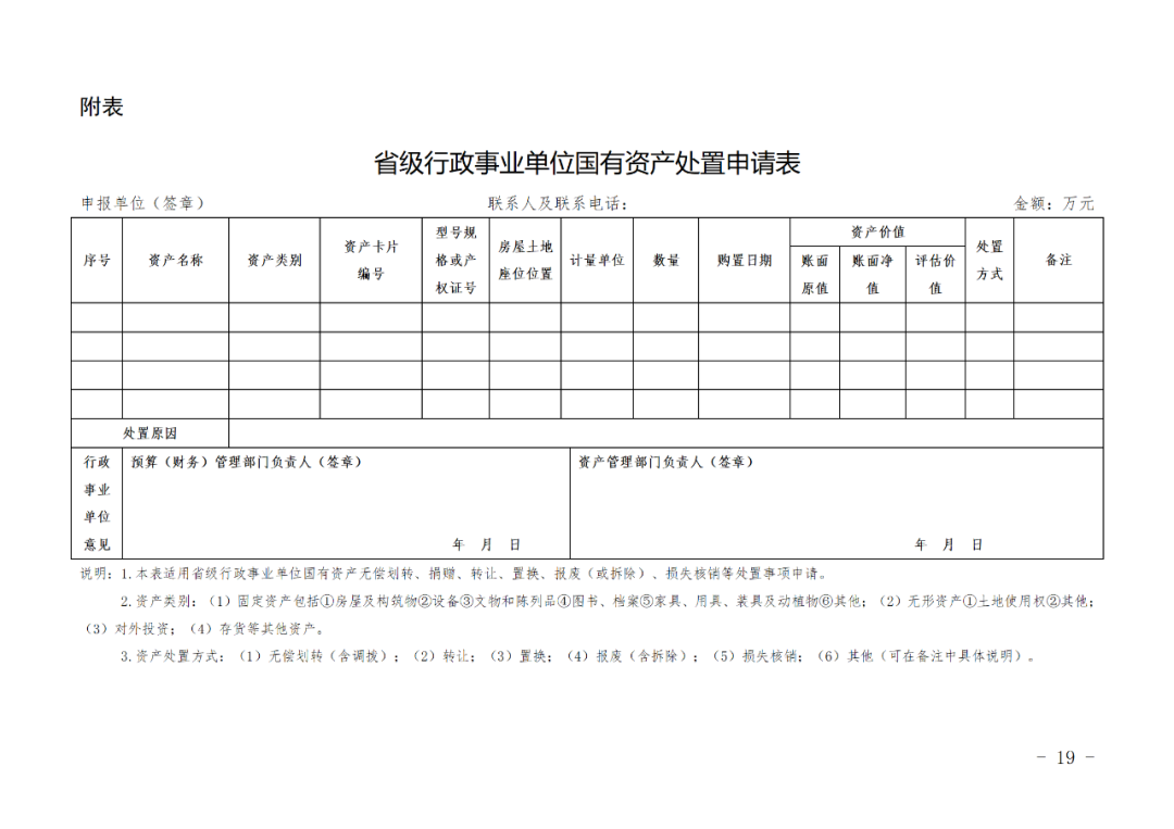 附表:省級(jí)行政事業(yè)單位國有資產(chǎn)處置申請(qǐng)表