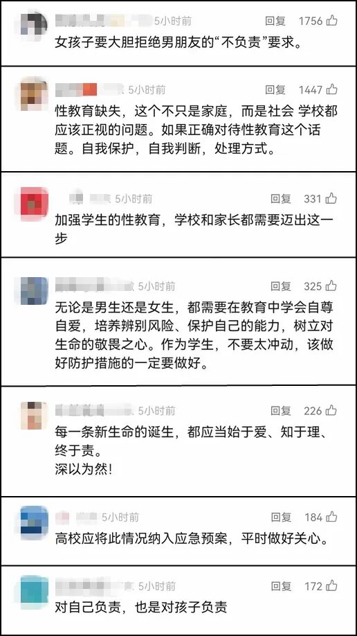 對此,網(wǎng)友們表示,“加強學生的性教育,學校和家長都需要邁出這一步”、“樹立對生命的敬畏之心”、“每一條新生命的誕生,都應當始于愛、知于理、終于責?!?/span>