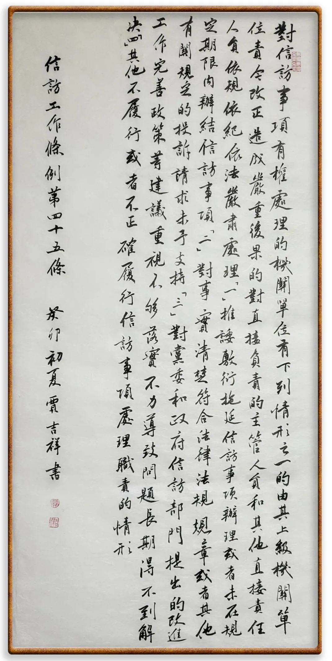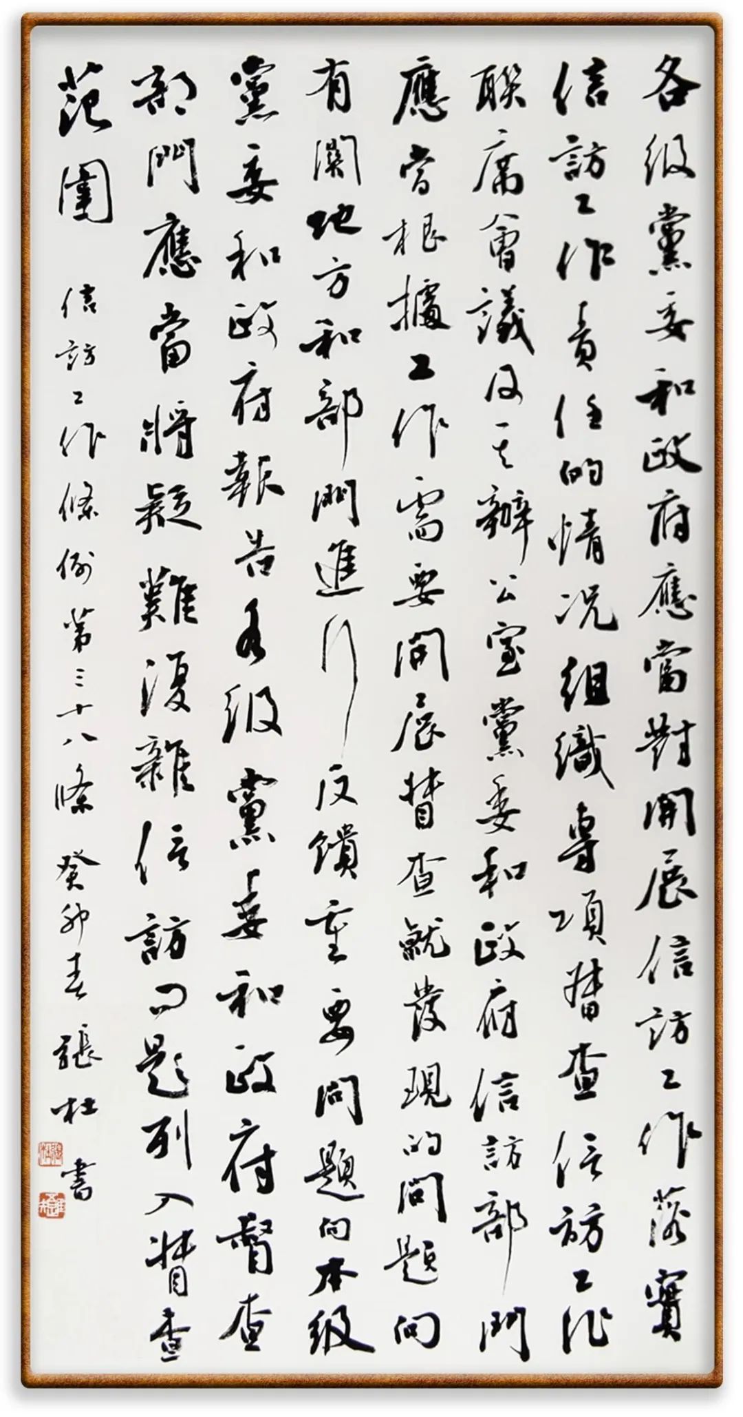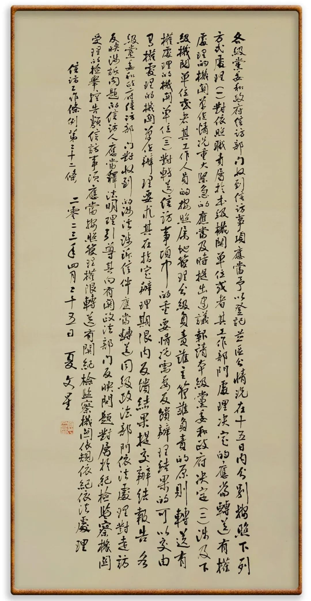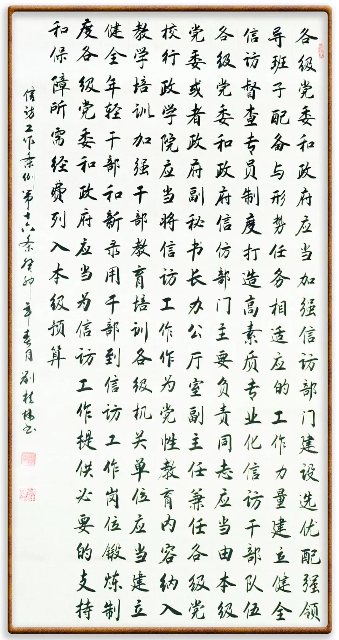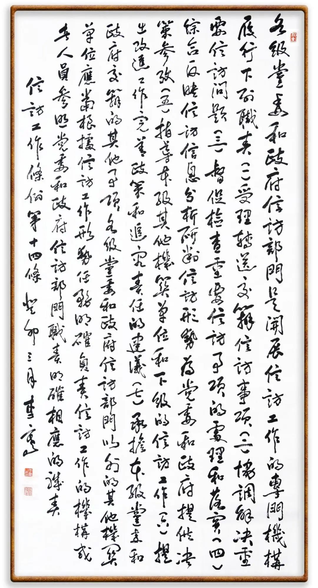各級機(jī)關(guān)、單位領(lǐng)導(dǎo)干部應(yīng)當(dāng)閱辦群眾來信和網(wǎng)上信訪、定期接待群眾來訪、定期下訪,包案化解群眾反映強(qiáng)烈的突出問題。