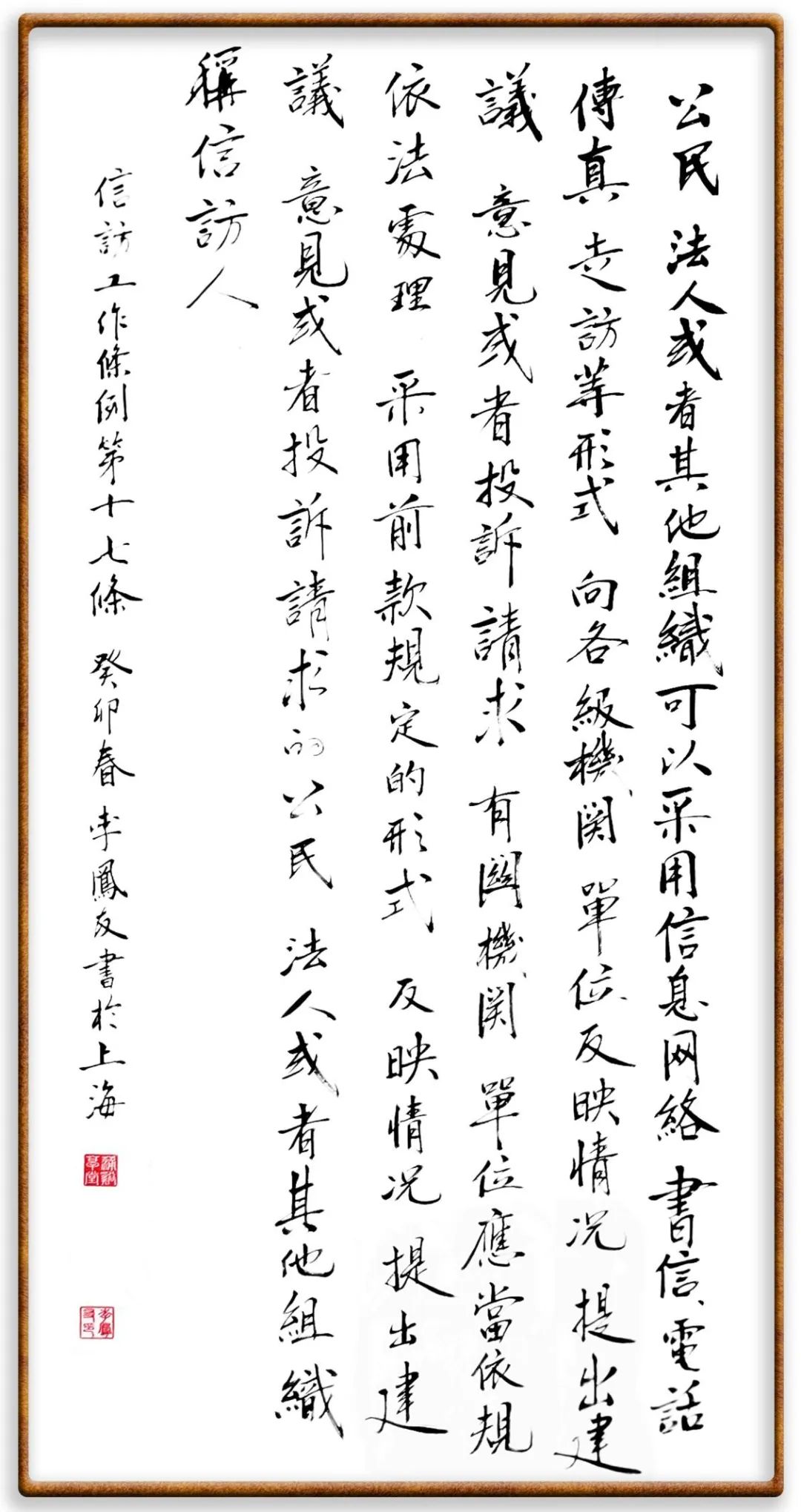 第十七條 公民、法人或者其他組織可以采用信息網(wǎng)絡(luò)、書信、電話、傳真、走訪等形式,向各級機(jī)關(guān)、單位反映情況,提出建議、意見或者投訴請求,有關(guān)機(jī)關(guān)、單位應(yīng)當(dāng)依規(guī)依法處理。