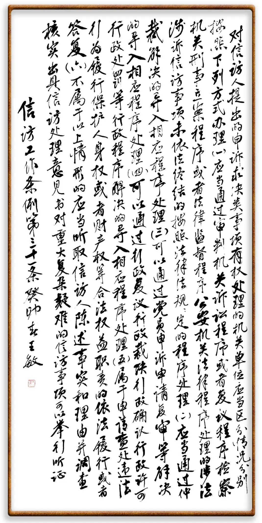 (四)堅(jiān)持依法按政策解決問題。將信訪納入法治化軌道,依法維護(hù)群眾權(quán)益、規(guī)范信訪秩序。