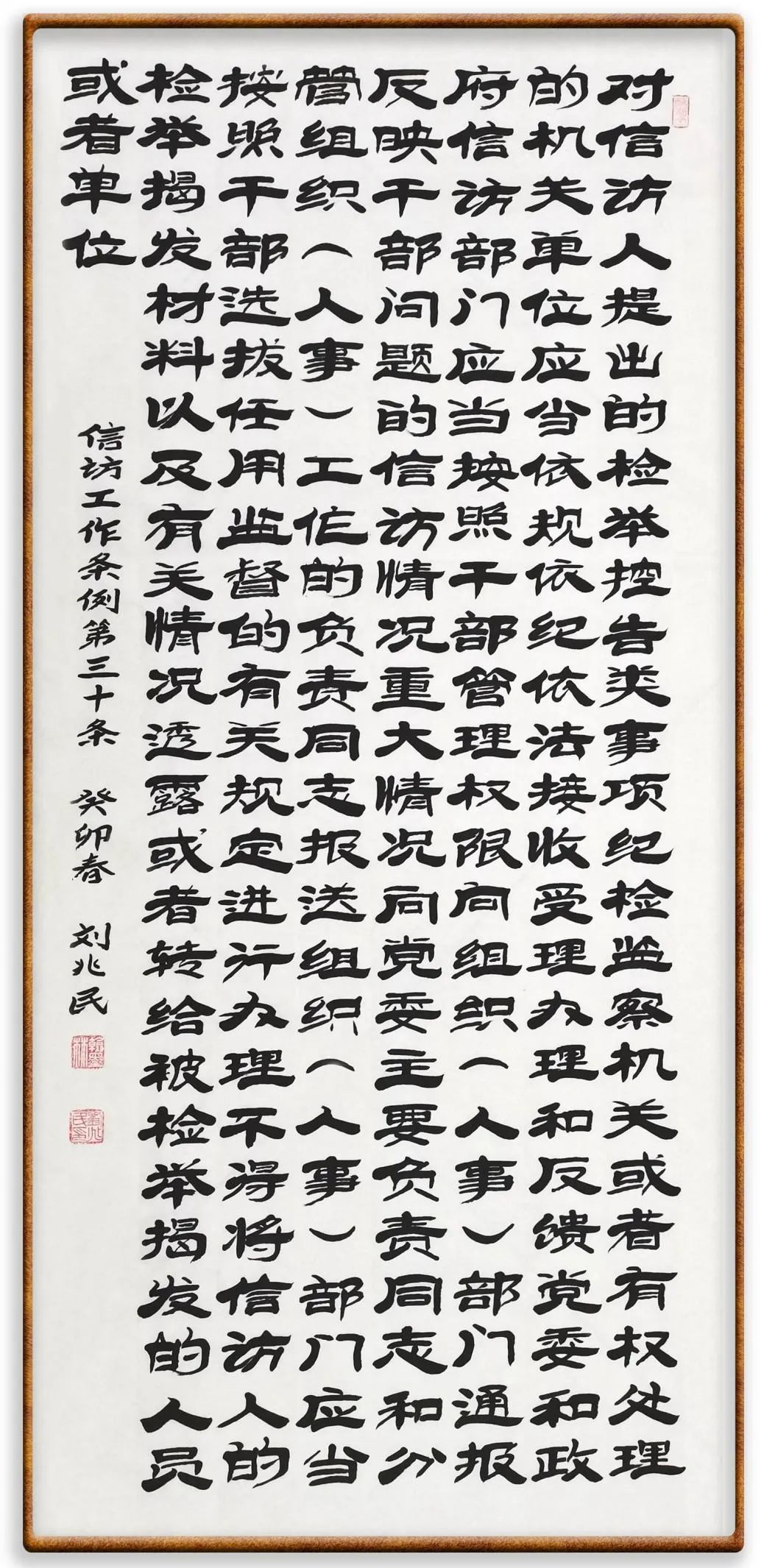 第三十條 對信訪人提出的檢舉控告類事項(xiàng),紀(jì)檢監(jiān)察機(jī)關(guān)或者有權(quán)處理的機(jī)關(guān)、單位應(yīng)當(dāng)依規(guī)依紀(jì)依法接收、受理、辦理和反饋。