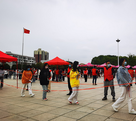 一實踐:會后,全體黨員、入黨積極分子、團(tuán)學(xué)會成員帶領(lǐng)及組織二級學(xué)院全體在校學(xué)生至文化廣場開展核酸檢測,維持現(xiàn)場紀(jì)律,不斷提醒和監(jiān)督學(xué)生保持“一米距離 ”,核酸檢測過程中突然天空飄起了毛毛細(xì)雨,志愿者們提前讓同學(xué)們早早準(zhǔn)備好健康碼,使得采樣速度大大加快。經(jīng)貿(mào)旅游學(xué)院按照學(xué)院的統(tǒng)一安排,堅持打好疫情阻擊戰(zhàn),嚴(yán)格落實疫情防控的各項要求,做好學(xué)生在校期間的思想、學(xué)習(xí)、生活等各方面的工作,幫助解決實際困難,讓疫情防控有“力度”,暖心服務(wù)有“溫度”。