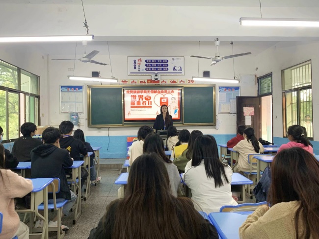 2023年11月23日,經(jīng)貿(mào)旅游學(xué)院在第5教學(xué)樓召開了無償獻血動員大會。經(jīng)貿(mào)旅游學(xué)院黨總支專職副書記段金平表示,“血液是生命與健康之源,是現(xiàn)代醫(yī)學(xué)治療疾病、拯救生命不可或缺、不可替代的有效手段。無償獻血作為人類社會文明進步的標(biāo)志,是創(chuàng)造和諧社會、救死扶傷的具體體現(xiàn),希望年滿18周歲的同學(xué)積極參與”。