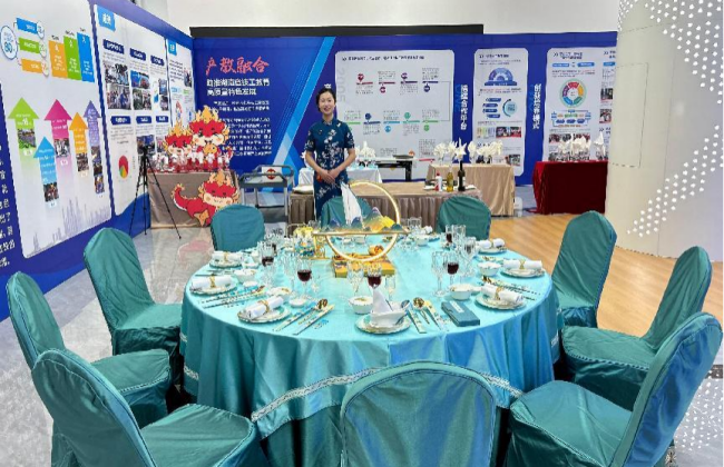 圖二:參賽選手譚玉林(金牌)中餐宴會(huì)擺臺(tái)比賽現(xiàn)