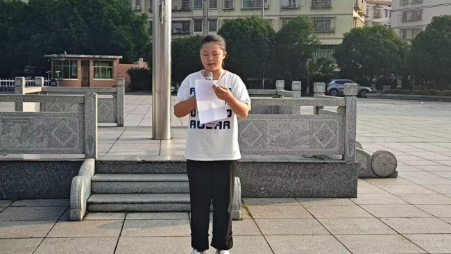 升旗儀式后,2024級旅游服務(wù)與管理專業(yè)高技班學(xué)生代表易苗作主題發(fā)言。她結(jié)合專業(yè)學(xué)習(xí)與校園生活實際,從“愛國精神的當(dāng)代內(nèi)涵”與“青年學(xué)子的責(zé)任擔(dān)當(dāng)”兩個維度展開分享。易苗以“課堂上深耕專業(yè)技能”、“志愿服務(wù)中傳遞溫暖”、“社會實踐里增長才干”等具體事例,生動詮釋了新時代青年對愛國主義的理解與踐行,號召同學(xué)們“將愛國心轉(zhuǎn)化為報國行,在青春奮斗中書寫時代答卷”。
