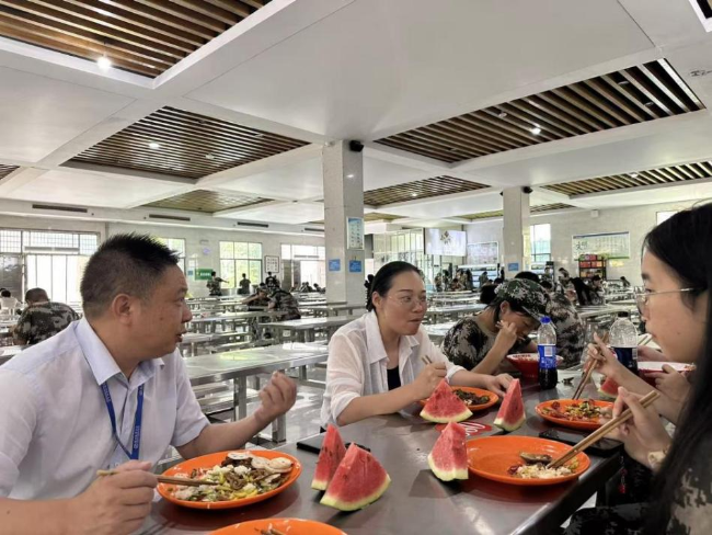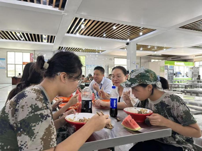 座談結(jié)束后,龐海英院長(zhǎng)與朱清如書(shū)記一同來(lái)到學(xué)生食堂,與少數(shù)民族同學(xué)們共進(jìn)午餐?!澳銈兤綍r(shí)喜歡吃什么口味的菜?食堂的菜品搭配是否符合飲食習(xí)慣?有沒(méi)有需要特別注意的口味禁忌?”朱清如書(shū)記走到餐臺(tái)前,一邊為同學(xué)們添菜,一邊細(xì)致詢問(wèn)飲食適應(yīng)情況。