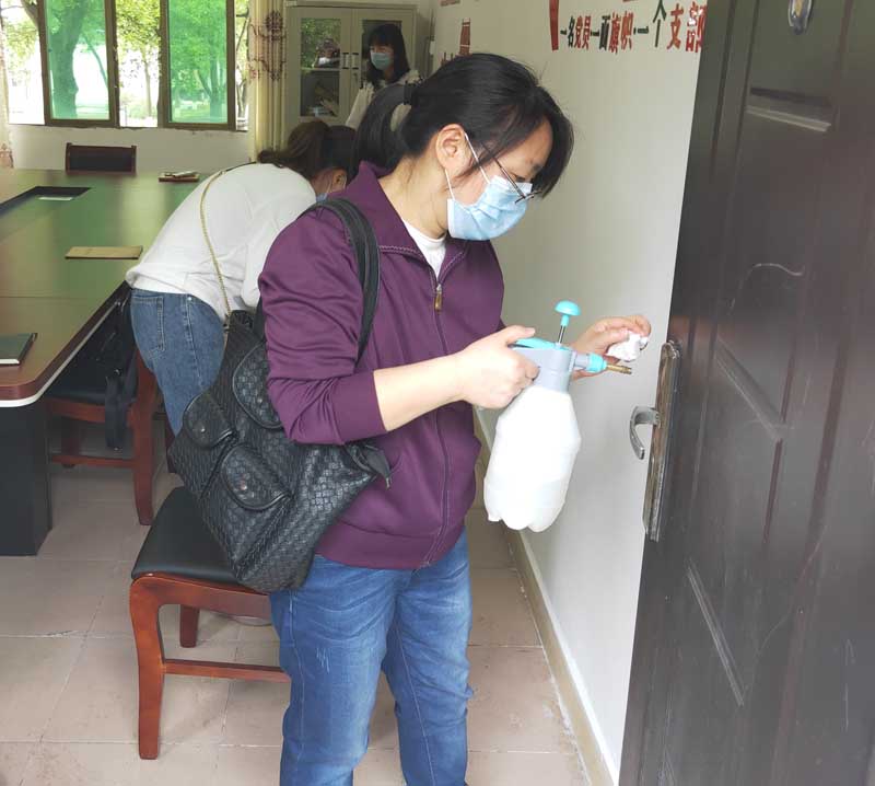理論學(xué)習(xí)后,所有黨員同志發(fā)揮先鋒模范作用,深入復(fù)學(xué)第一線,對(duì)經(jīng)貿(mào)系公共區(qū)域、第五教學(xué)樓教室、教師辦公室進(jìn)行了清掃和消毒。