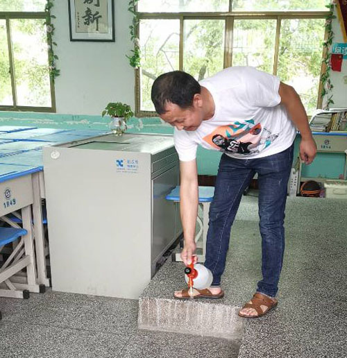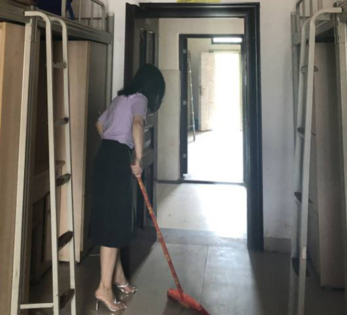 (開學(xué)前,班主任幫每個宿舍做好衛(wèi)生 圖為19美發(fā)三班王美老師在清理宿舍)